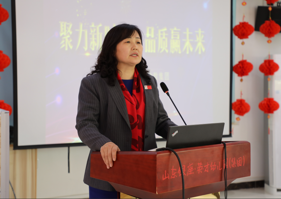 焦敏在對接了魯商集團(tuán)2019年工作部署與要求之后,面向全體與會人員提出,2019年銀座幼教仍然以“高品質(zhì)發(fā)展”為主線,突出改革與轉(zhuǎn)型,將宏觀戰(zhàn)略升級為“品質(zhì)聚能戰(zhàn)略”,并以“賦能、轉(zhuǎn)型、創(chuàng)新、活力”為八字方針,在新舊動能轉(zhuǎn)換中聚動能,在品牌優(yōu)勢下聚勢能,在互聯(lián)網(wǎng)+的思維中聚智能,進(jìn)而提升品質(zhì),實(shí)現(xiàn)行動突圍。在重點(diǎn)舉措方面,提出“一三五七”部署。即一個(gè)中心(黨建),三個(gè)重點(diǎn)(三三一體化發(fā)展),五項(xiàng)措施(向創(chuàng)新要前途、向培訓(xùn)要市場、完善機(jī)制控成本、向品質(zhì)要聲譽(yù)及紅線意識),七項(xiàng)工作(調(diào)整組織架構(gòu)、公司化發(fā)展、強(qiáng)化師德建設(shè)、升級5S精細(xì)化管理、拓展培訓(xùn)項(xiàng)目、加快課程改革、開展資金運(yùn)作)。