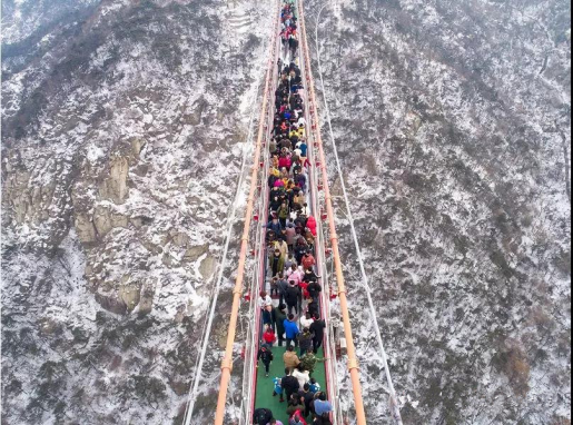 冰雪世界,喜氣盈盈。霧凇晶瑩,暖意滿懷。這個春節(jié),天蒙山開啟了一場有趣味、有挑戰(zhàn)的狂歡盛宴。數(shù)萬名游客齊聚天蒙山歡喜過大年,全家老小逛廟會,吃喝玩樂嗨不停。傳統(tǒng)民俗表演好戲連臺,廟會大集令人眼花繚亂、目不暇接。除了精彩紛呈的節(jié)目,天蒙景區(qū)還特地準備了高空飛人千米山巔蒙眼橫跨世界最長人行懸索橋、祈福、免費挑戰(zhàn)網(wǎng)紅玻璃橋等多種活動,為景區(qū)聚集了人氣,提升了曝光量和知名度。景區(qū)內(nèi)準備充分,應(yīng)對措施到位,運營安全平穩(wěn),秩序井然,游客好評如潮。