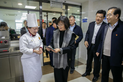 周春艷一行在城市學(xué)院黨委書記宋寧陪同下,現(xiàn)場(chǎng)視察了學(xué)院餐旅產(chǎn)教融合實(shí)訓(xùn)基地(誠(chéng)悅酒店)、中餐實(shí)訓(xùn)中心、西餐實(shí)訓(xùn)中心等,認(rèn)真聽取了宋寧關(guān)于學(xué)院綜合改革、專業(yè)建設(shè)、新型學(xué)徒制推廣、混合所有制探索等情況的匯報(bào)。視察中,周春艷深入課堂,親切慰問了學(xué)院師生,并親自為第44屆世界技能大賽西餐項(xiàng)目?jī)?yōu)勝獎(jiǎng)獲得者曲笛頒發(fā)“山東惠才卡”,勉勵(lì)她珍惜榮譽(yù)、再接再厲,在教師崗位上發(fā)揮自身技能特長(zhǎng),培養(yǎng)出更多高技術(shù)技能人才,為區(qū)域經(jīng)濟(jì)發(fā)展作出更大貢獻(xiàn)。