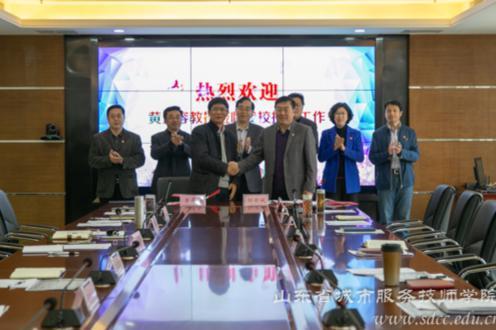 4月17日,學(xué)院與兄弟院校山東商業(yè)職業(yè)技術(shù)學(xué)院簽訂協(xié)議,雙方將在資源共享、專業(yè)建設(shè)、師資培養(yǎng)和招生就業(yè)等方面開展校校戰(zhàn)略合作。在具體辦學(xué)中,兩校將開展產(chǎn)學(xué)研對接與融合,共同培養(yǎng)高技能人才、共享資源、共同制訂人才培養(yǎng)方案、共同育人、互通教學(xué)、共融文化,實現(xiàn)雙贏,并力求在技術(shù)創(chuàng)新、科技攻關(guān)、成果轉(zhuǎn)化等多方面多領(lǐng)域協(xié)同發(fā)展,努力培養(yǎng)社會和企業(yè)需要的高素質(zhì)勞動者和技術(shù)技能人才,為我省新舊動能轉(zhuǎn)換重大工程作出新的貢獻。