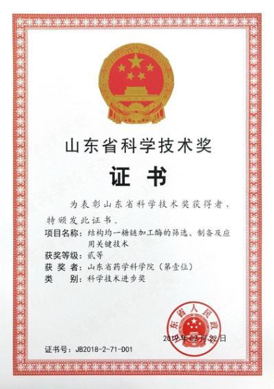 4月30日,山東省藥學科學院(以下簡稱省藥科院)和山東福瑞達醫藥集團有限公司(以下簡稱福瑞達醫藥集團)獲頒2018年度山東省科學技術進步二等獎證書。根據《山東省人民政府關于2018年度山東省科學技術獎勵的決定》,省藥科院與山東大學、福瑞達醫藥集團聯合申報的“結構均一糖鏈加工酶的篩選、制備及應用關鍵技術”項目,榮獲山東省科學技術進步二等獎(省藥科院列第一位、福瑞達醫藥集團列第三位)。項目完成人為藥科院生物藥物研究所凌沛學、劉飛、張曉元等研究團隊成員。
