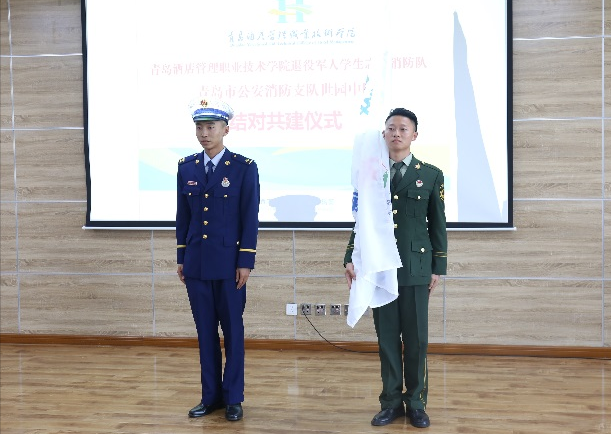 5月23日,青島酒店管理職院與青島消防救援支隊世園中隊結對共建青島首家大學生退役士兵志愿消防隊,并舉行了授旗和宣誓儀式。活動得到了人民網等10余家新聞媒體關注報道,受到社會廣泛關注。
