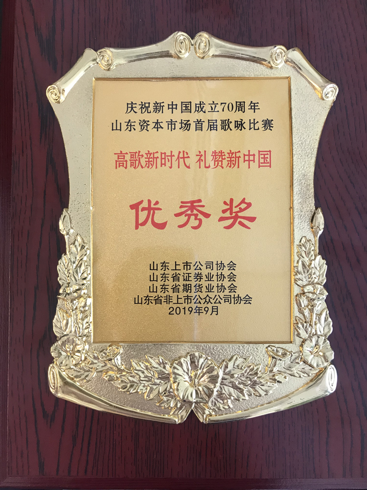 為喜迎新中國成立70周年,謳歌新時代資本市場的新變遷、新發展,由山東上市公司協會等四家單位主辦的“山東資本市場(濟南地區)首屆歌詠比賽”活動在山東劇院舉行。銀座集團代表隊榮獲優秀獎。