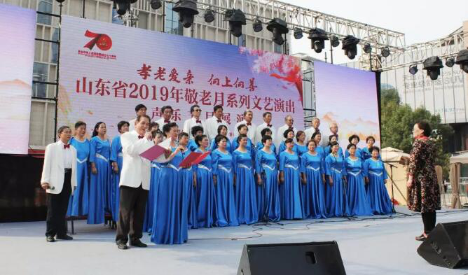 山東省2019“敬老月”系列文藝演出分為“綜藝展演”“戲曲展演”“舞蹈展演”“聲樂展演”,千余名老朋友上演近百個精彩節目。旗袍秀、朗誦、葫蘆絲、京劇合唱、歌伴舞等各式藝術形式輪番呈現,充分展示了廣大中老年人健康向上的陽光心態。