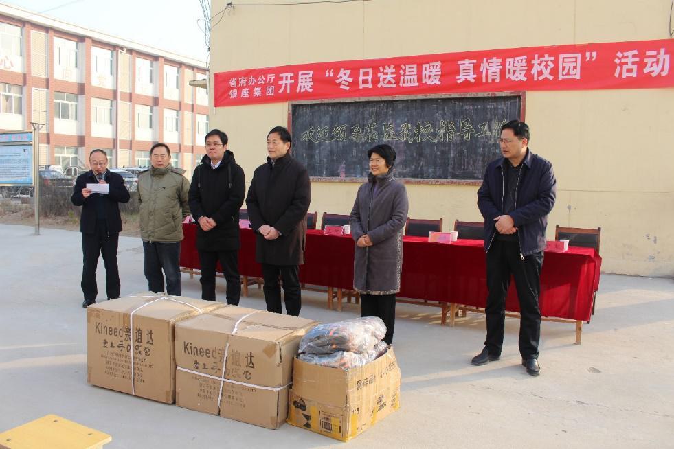 1月20日上午,由省政府辦公廳和銀座集團聯合開展的“冬日送溫暖,真情暖校園”活動,走進菏澤市曹縣倪集鎮倪集街道辦事處第一中學,為在校學生送去了保暖手套等慰問品。省政府辦公廳副主任王健,曹縣縣委副書記、縣長梁惠民,銀座集團菏澤區域總經理劉濤出席了捐贈活動。