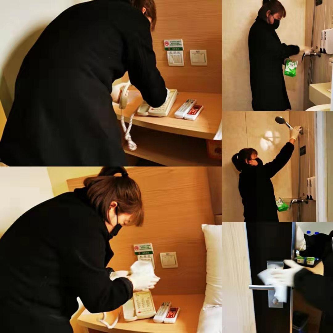 泉城大酒店樓層領(lǐng)班白雪磊在春節(jié)假期里一直值班。疫情越來越嚴(yán)峻,回老家的同事不能回濟南上班,她自告奮勇站出來,“我可以上班,這幾天我都沒有問題。”1月28日,樓層在住19間客房,白雪磊負(fù)責(zé)封樓的巡視、查房,還要清潔未分配下去的房間,非常辛苦。 其實,就這樣任勞任怨的白雪磊,家里有兩個孩子,一個四歲另一個還不到一歲,加班期間只得麻煩婆婆照顧。