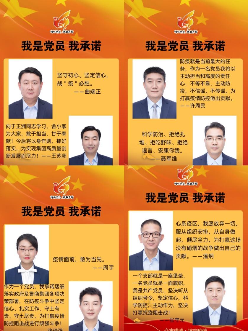 學習采取線上集中學習和線下自學相結合的方式,各黨小組召開視頻會議、進行線上交流,根據實際工作談個人體會;同時通過學習強國、微信、釘釘等平臺自學。大家根據所學所感,并以一句話說出對抗疫工作及集團工作的信心決心和承諾。“疫情無情人有情,魯商國企顯擔當,全體職工跟黨走,眾志成城勝‘疫戰’”“學擔當,優秀黨員樹楷模;看行動,魯商集團作表率。”一句句鏗鏘誓言展現了全體黨員積極應對疫情、做好防范工作、堅決打贏“戰疫”的信心和決心。承諾墻以H5的形式傳閱,引起強烈反響。
