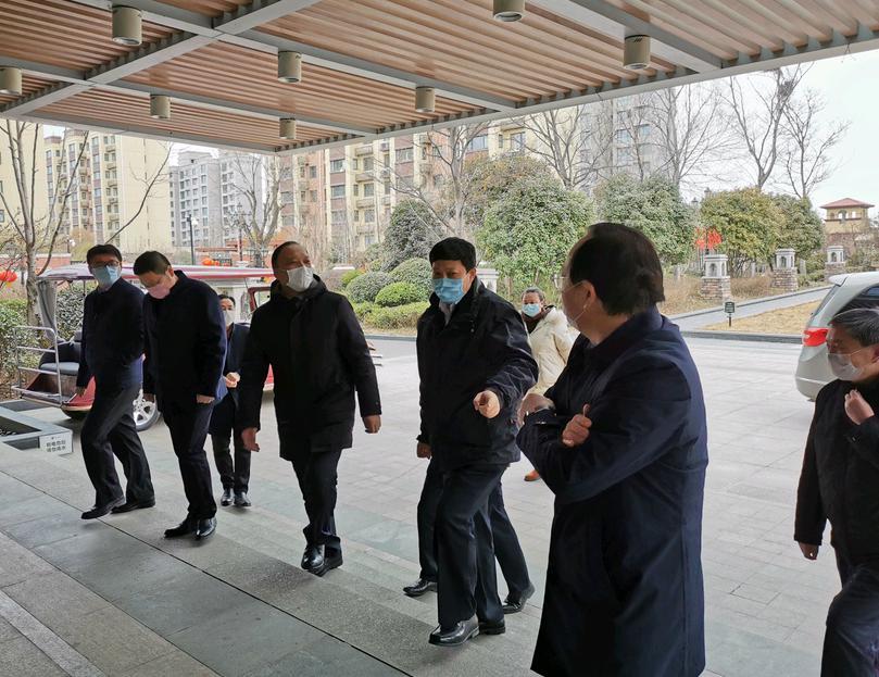 2月5日,臨沂市河?xùn)|區(qū)委書記雋新陽帶領(lǐng)區(qū)疾控中心人員,到魯商知春湖項(xiàng)目檢查指導(dǎo)疫情防控工作。湯頭旅游度假區(qū)管委會主任管繼斗陪同。