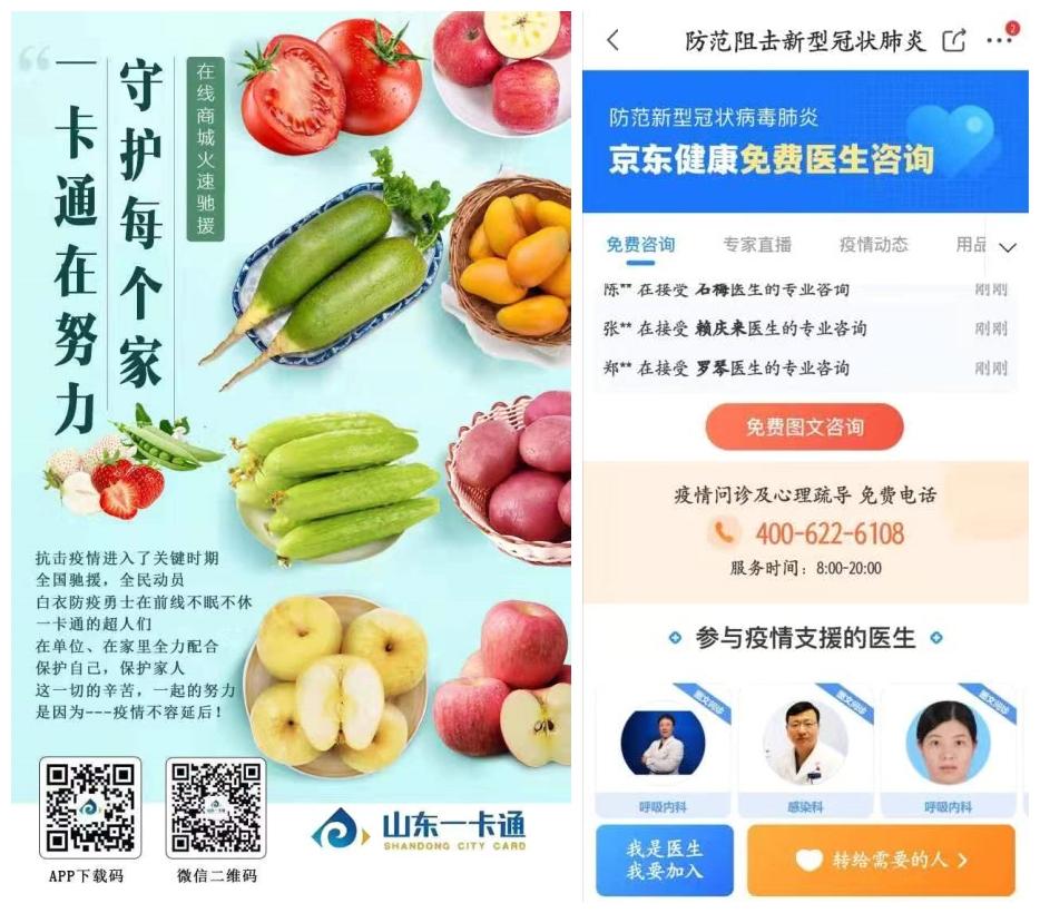 此外,為方便特殊時期群眾及時就醫(yī),易通發(fā)展集團(tuán)積極加強(qiáng)外部合作:分別與京東健康、醫(yī)聯(lián)山東合作,在山東一卡通APP本地生活服務(wù)平臺和山東一卡通微信公眾號雙渠道推出互聯(lián)網(wǎng)義診服務(wù),由專業(yè)醫(yī)生為有需求的公眾提供免費(fèi)問診、心里疏導(dǎo)、在線答疑等服務(wù);與泰山財(cái)產(chǎn)保險股份有限公司合作推出針對新冠肺炎的“泰山護(hù)身福”項(xiàng)目,現(xiàn)已接入山東一卡通APP本地生活服務(wù)平臺,可為患者提供生活保障,免去后顧之憂。