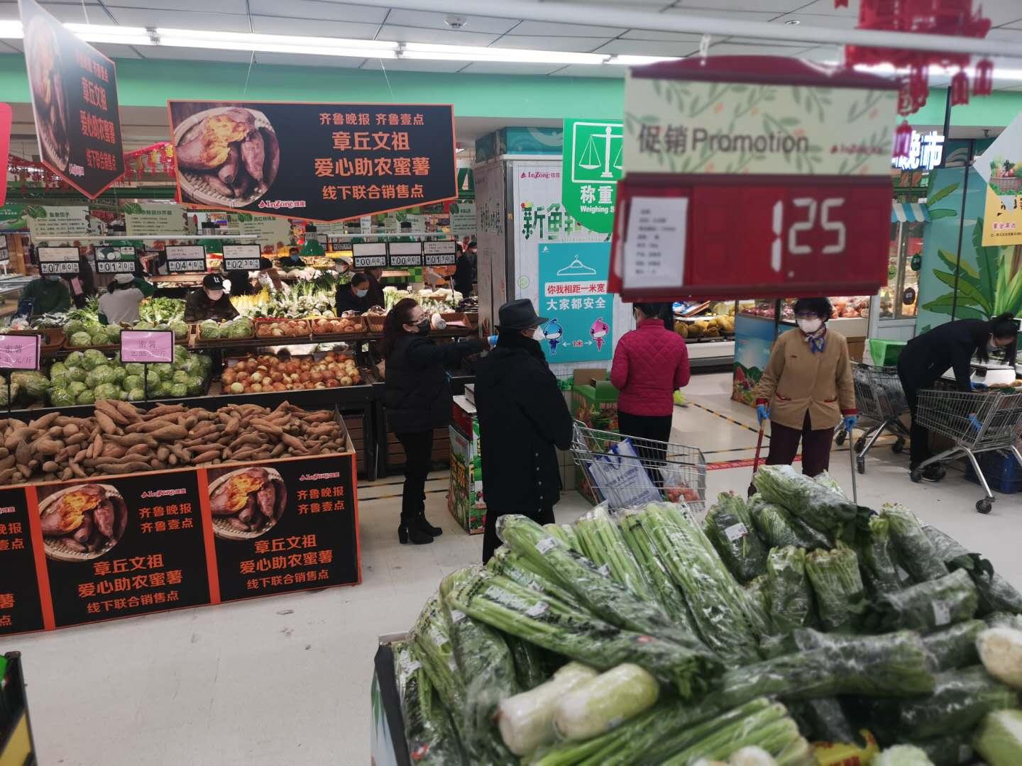 蔬菜區重視顧客購物間距。通過重點單品分析,將重點跑量單品增設分布區,增加包裝菜,同時通過加設音響提示、全員提示顧客保持間距等辦法,實現顧客自動分離購買。
