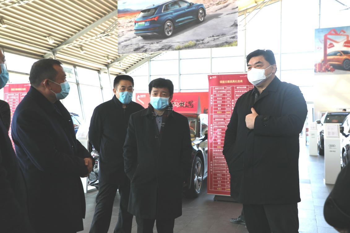 經(jīng)過(guò)佩戴口罩檢查、體溫檢測(cè)、信息登記、車(chē)輛消毒等防護(hù)檢查后,孫德順一行到銀座奧迪展廳、售后車(chē)間,實(shí)地察看了疫情防控措施具體落實(shí)情況,詳細(xì)了解了公司經(jīng)營(yíng)現(xiàn)狀和CAR研(山東國(guó)際汽車(chē)中心)項(xiàng)目復(fù)工籌備情況。