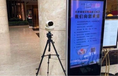 酒店大堂安裝無感紅外測溫新裝備,智能刷臉即時完成體溫測量,將隱患阻隔于店外。