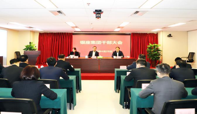 4月29日上午,銀座集團組織召開公司干部大會,公布各經營單位負責人競標選聘結果,部署近期重點工作。省商業集團有限公司首席電子商務官、銀座集團黨委書記布廷現出席會議并講話。