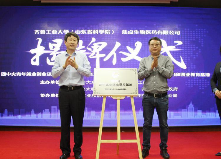 5月15日上午,山東焦點生物科技股份有限公司(以下簡稱“焦點生物”)和齊魯工業大學(山東省科學院),在省派濟寧大眾報業集團“四進”工作組牽線推動下簽署校企合作協議,并舉行“團中央青年就業創業見習基地”“泰山學者工作站”“博士科研工作站”和“就業實習與創業教育基地”揭牌儀式。
