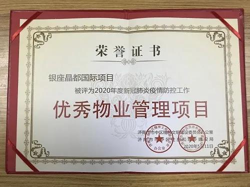 魯商物業銀座晶都項目榮獲濟南市市中區疫情防控“優秀物業管理項目”