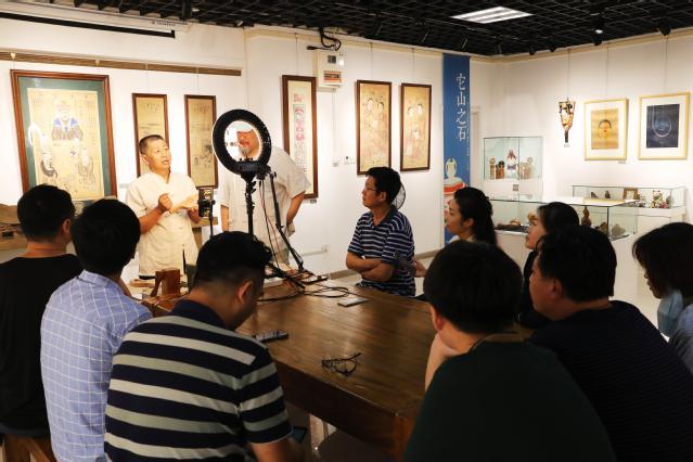 活動利用線上直播和線下論壇相結合形式展開,青島市民間文藝家協會副主席、青島手工藝協會會長、青島手工藝博物館館長魯漢科普了端午節與榼子的關系和傳承淵源,講述了端午節的奇聞趣事、“五毒餅”食俗的淵源以及榼子的制作工藝。青島餑餑榼子非遺傳承人、青島市工藝美術大師王丕文現場操刀,從選材、加工和雕刻等流程上,為大眾演示了榼子的制作方法。
