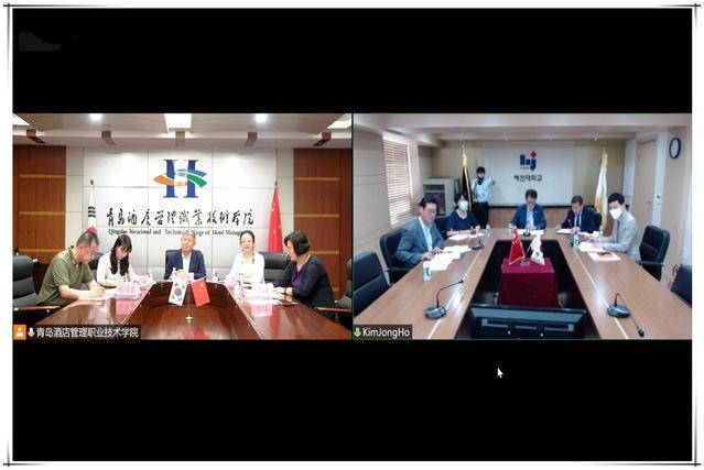 7月7日下午,青島酒店學(xué)院與韓國彗田大學(xué)召開“云會議”,學(xué)院黨委書記李達與彗田大學(xué)總長李世鎮(zhèn)介紹了己方院校的疫情防控工作和教育教學(xué)情況,雙方就世界疫情背景下兩校間的交流與合作進行深入研討。