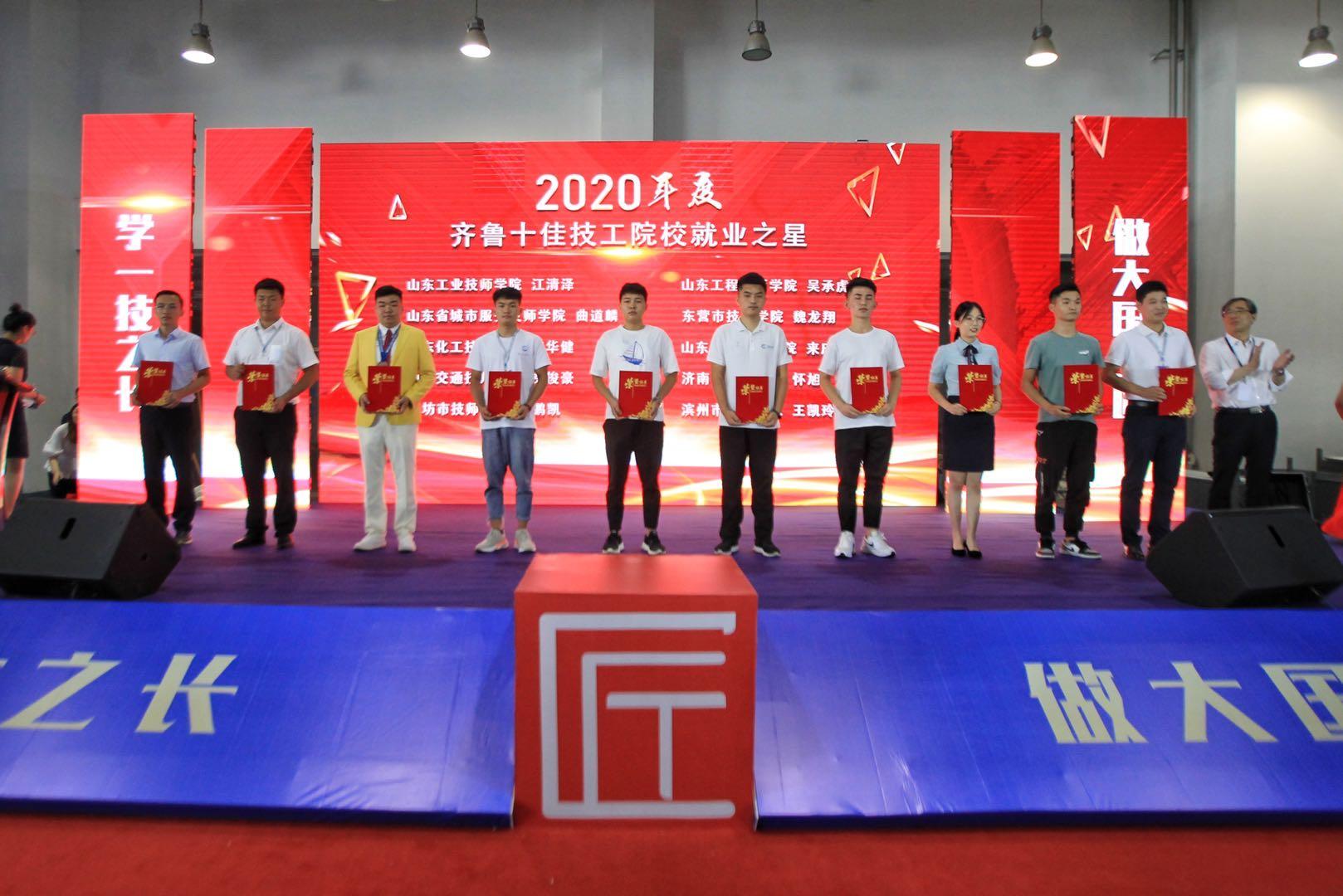 咨詢會現場公布了2020年度齊魯十佳技工院校就業之星、齊魯最具就業競爭力十佳技工院校評選獲獎名單,并進行了頒獎。(文/李亞洲)
