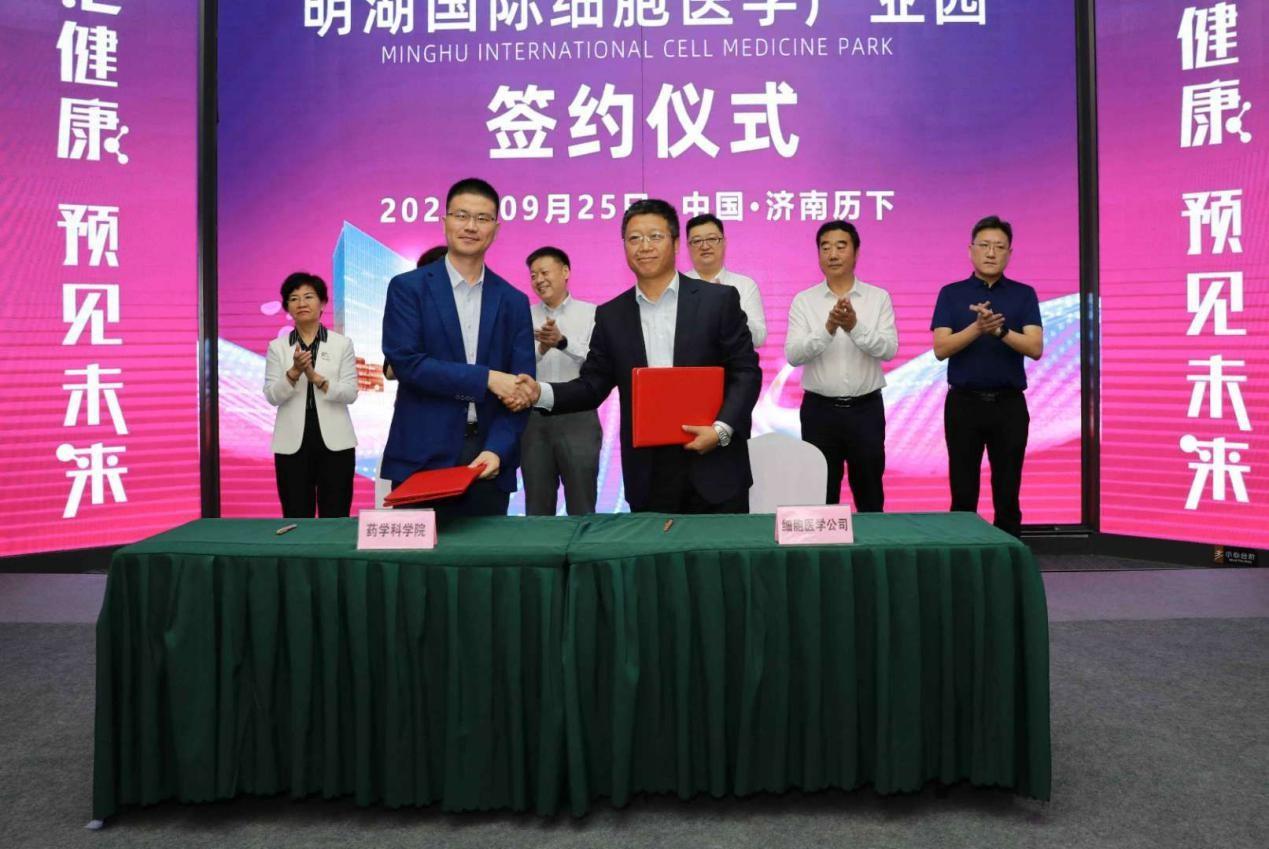 9月25日,明湖國際細胞醫學產業園(以下簡稱“細胞產業園”)簽約儀式在中央商務區文化服務中心舉行。自貿試驗區濟南片區管委會常務副主任劉艷秋,市商務局副局長梁旭斌,市工信局副局長朱牧,市衛生健康委員會副主任楊玉華,歷下區區委書記江山等出席簽約儀式。省藥科院副院長劉飛作為嘉賓受邀出席簽約儀式并同細胞醫學公司簽署戰略合作協議。