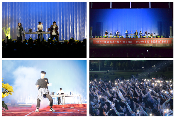 9月30日晚19:00,隨著架子鼓的一聲震動,2020年首屆“魯醫(yī)熱浪”音樂節(jié)正式開始。竇房結(jié)樂隊、氟西汀樂隊、校音樂社伴隨陣陣歡呼聲輪番上場,唱出青春激情與活力;DJ穿插精彩紛呈的舞蹈引爆眾多觀眾的激情,炫酷的搖滾,華麗的燈光,躁動的音樂,將整場音樂節(jié)推向極致。演出現(xiàn)場激情四射,觀眾跟著音樂節(jié)奏揮舞著手中的熒光棒,掌聲歡呼聲此起彼,學生會QQ公眾號為博山校區(qū)的同學進行了現(xiàn)場直播,直播觀看人數(shù)達2000人,點贊10000余次,直播評論區(qū),熱鬧非凡,紛紛為今夜首屆“魯醫(yī)熱浪”音樂節(jié)打call。