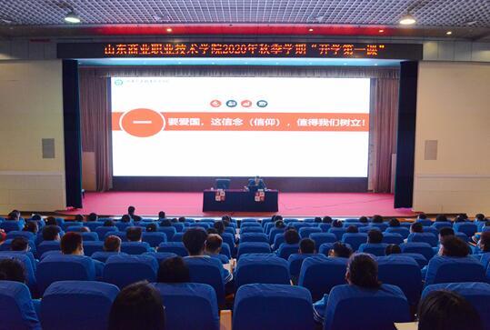 10月21日,山東商院2020級新生開學第一課舉行,山東商院黨委書記張志東以“愛國主義”為主題開講,400余名2020級新生聆聽了生動的“開學第一課”,學校黨委副書記侯功海主持。