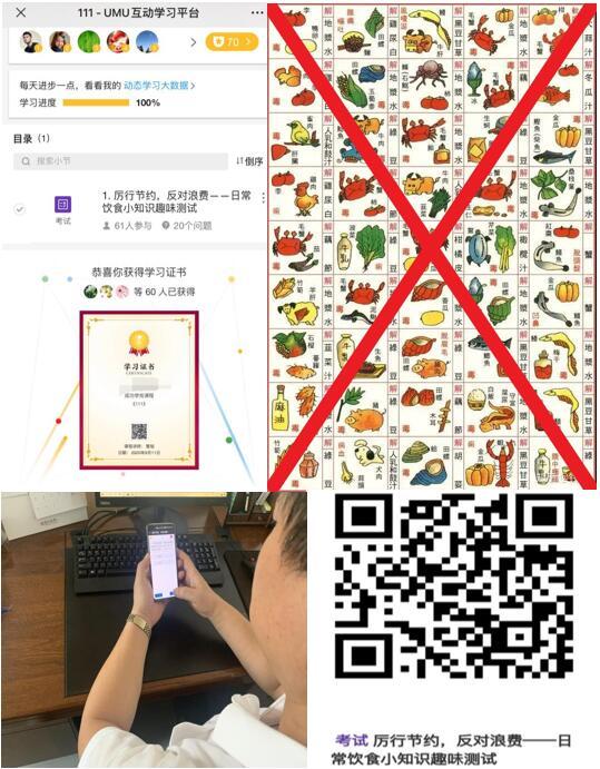 投資公司利用飯后時(shí)間突擊建立“厲行節(jié)約·反對(duì)浪費(fèi)——日常飲食小知識(shí)趣味測(cè)試”微信群組,并在群內(nèi)展示了測(cè)試小程序二維碼,邀請(qǐng)大家即時(shí)手機(jī)掃碼參與。參與答題的同事們熱情高漲,紛紛表示這種答題方式既能寓教于樂(lè),讓死板的知識(shí)動(dòng)起來(lái),又能發(fā)現(xiàn)因以往錯(cuò)誤認(rèn)知而產(chǎn)生的食物浪費(fèi)。