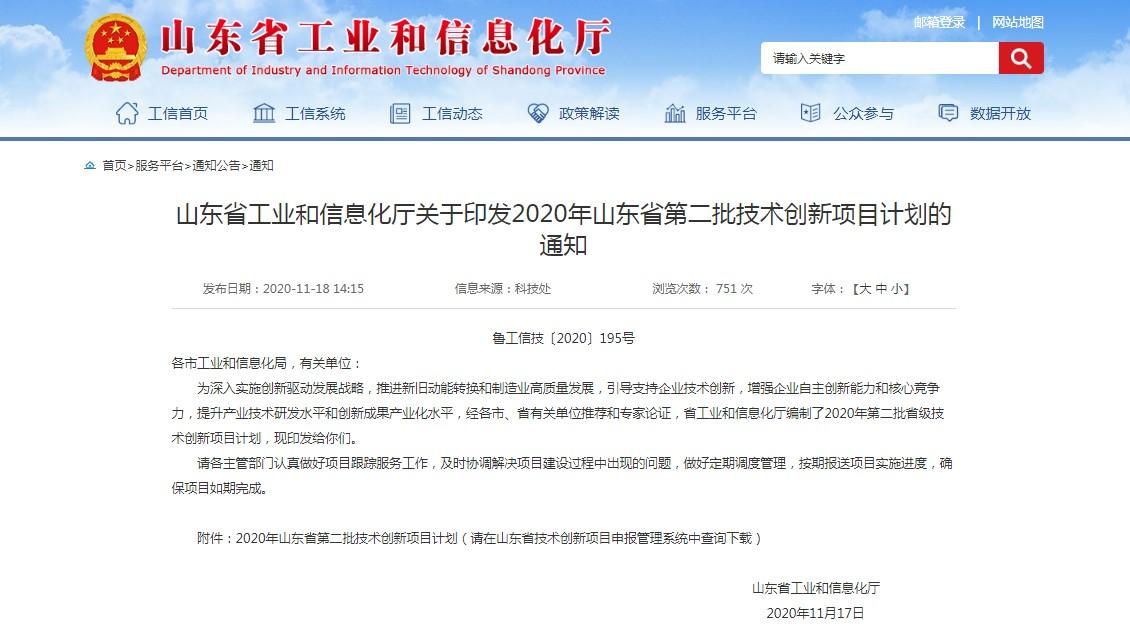 近日,山東省工業(yè)和信息化廳公布了2020年山東省第二批技術(shù)創(chuàng)新項目計劃,易通申報的3個項目成功入選。