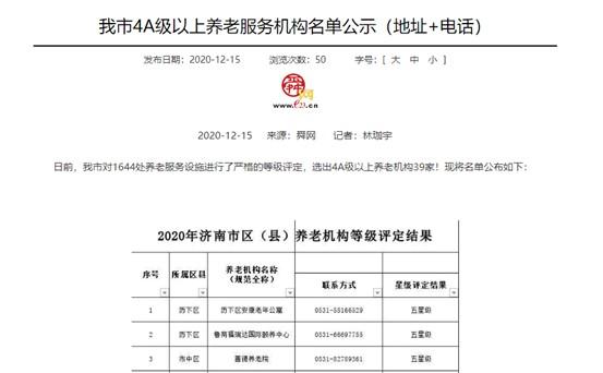 此次評選,濟南市民政局委托第三方機構(gòu)對全市1644處養(yǎng)老服務設(shè)施進行了嚴格的等級評定,評選出4星級以上養(yǎng)老機構(gòu)39家,其中5星級養(yǎng)老機構(gòu)共15家。