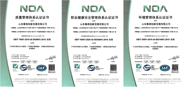 近日,魯商發展所屬山東魯商創新發展有限公司(簡稱魯商創新發展)順利取得由國家認證認可監督管理委員會頒發的ISO9001、ISO14001、ISO45001三大管理體系認證證書。此次認證包含產業項目策劃與公關服務、產業園區管理服務、計算機應用軟件技術咨詢服務三大板塊,涵蓋了魯商創新發展整個研發、策劃、運營、服務及相關管理活動的全過程。