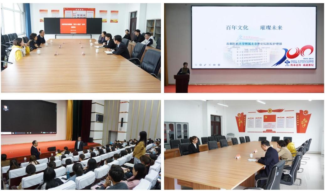 近日,首都醫科大學附屬北京世紀壇醫院護理部主任劉俐惠一行到齊魯醫藥學院考察,并就學生實習、就業合作事宜進行洽談,齊魯醫藥學院護理學院院長王麗及部分教師參加座談。