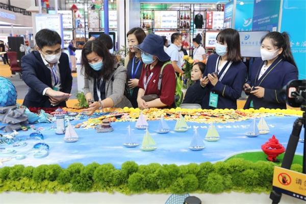 “百年芳華·帆之都”主題展臺,圍繞慶祝中國共產黨成立100周年,集面塑、衍紙、插花、景觀設計、餑餑榼子等技藝技能為一體,由學院文創產品餑餑榼子塑造的“游魚”形象象征莘莘學子力爭上游的精神,“大樹”形象象征學院“十年樹木,百年樹人”的教育責任,衍紙花、面花和藝術擺花的融合寓意學院“專業融合、百花齊放”,“孔雀”造型寓意學院德育為先、知行合一的教育理念,“浪花”與“帆船”彰顯了學院乘風破浪、勇往直前的奮斗精神。展臺運用3D全息投影視頻和3D打印雕塑,凸顯學院專業特色,增強展臺的科技時尚感。