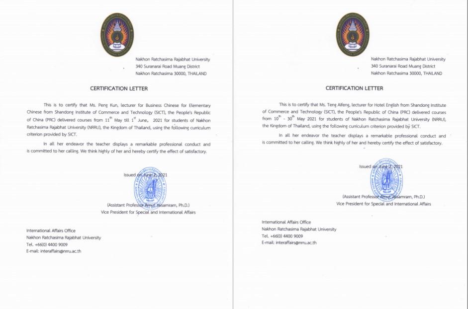 近日,山東商院兩位教師如期完成為泰國呵叻皇家大學(Nakhon Ratchasima Rajabhat University)的網絡直播授課任務,保障了本學期學校與泰國院校合作項目的順利進行。