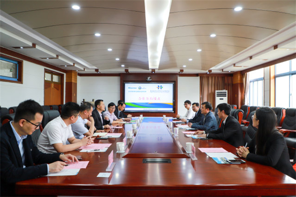 在姜玉鵬、夏章抓的共同見證下,烹飪學院副院長王志興和海信家電集團智能家電重點實驗室副主任龔連發(fā)簽署校企合作協(xié)議。