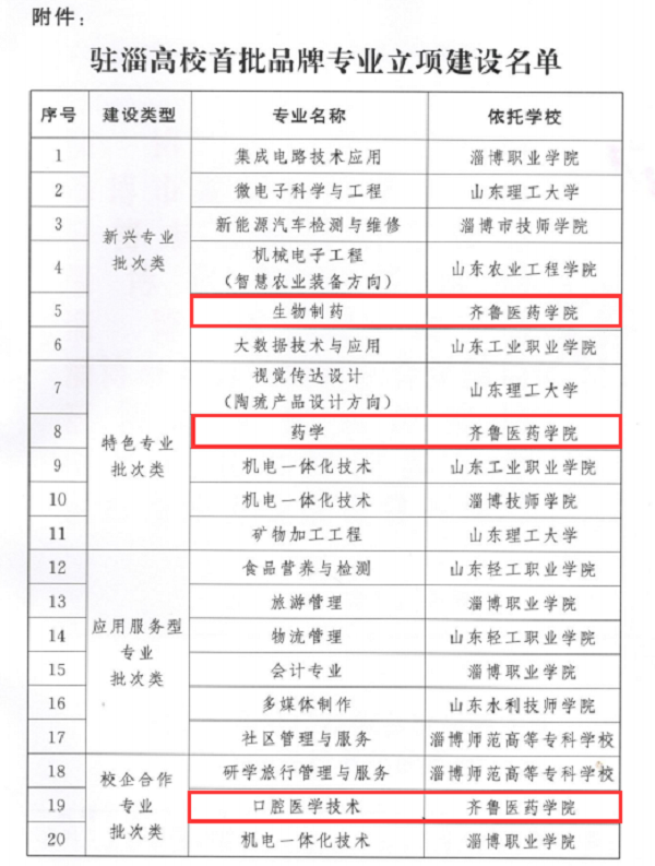 喜訊!齊魯醫藥學院3個專業獲批駐淄高校“四個一批”品牌專業