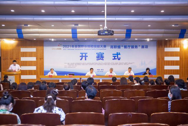 6月20日下午,由教育部等36個(gè)部委主辦的2021年全國職業(yè)院校技能大職組“餐廳服務(wù)”賽項(xiàng)在青島酒店學(xué)院開賽,學(xué)院黨委書記李達(dá)致辭,院長姜玉鵬主持開幕式。