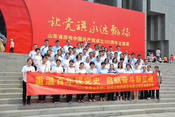 7月18日,明仁福瑞達黨支部開展“重溫百年建黨史 啟航奮斗新征程”主題黨日活動,黨員干部、入黨積極分子共71人到省博物館參觀學習。