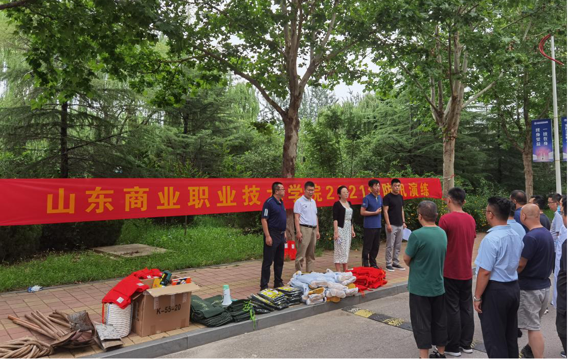 7月21日,山東商院開展防汛強險應急演練活動,提高防汛搶險的反應和應急處置能力。院長王鑫赴現(xiàn)場指導。