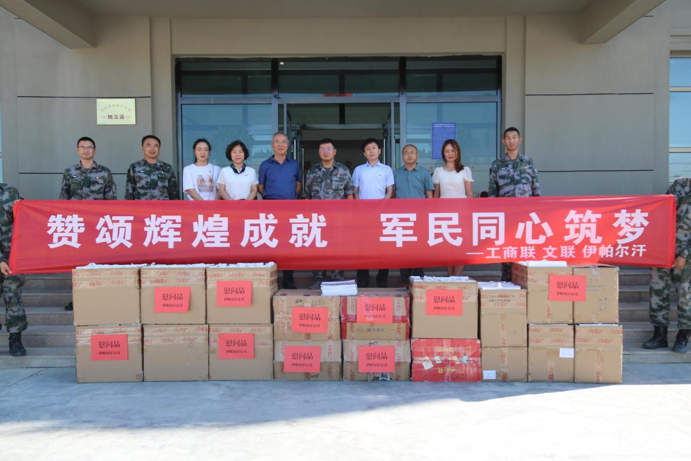 7月26日,師市工商聯(lián)主席曾建中,秘書長(zhǎng)孫杉,文聯(lián)主席劉燦霞,伊帕爾汗財(cái)務(wù)總監(jiān)張建軍等一行6人來(lái)到第四師可克達(dá)拉市武裝部開(kāi)展“贊頌輝煌成就 軍民同心筑夢(mèng)”慰問(wèn)活動(dòng)。