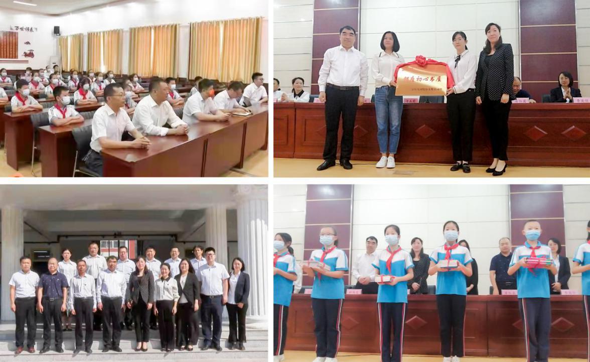活動現場,銀座集團向東阿鎮(zhèn)少岱小學捐贈圖書和學習用品,并與學校領導共同為“銀座初心書屋”掛牌。