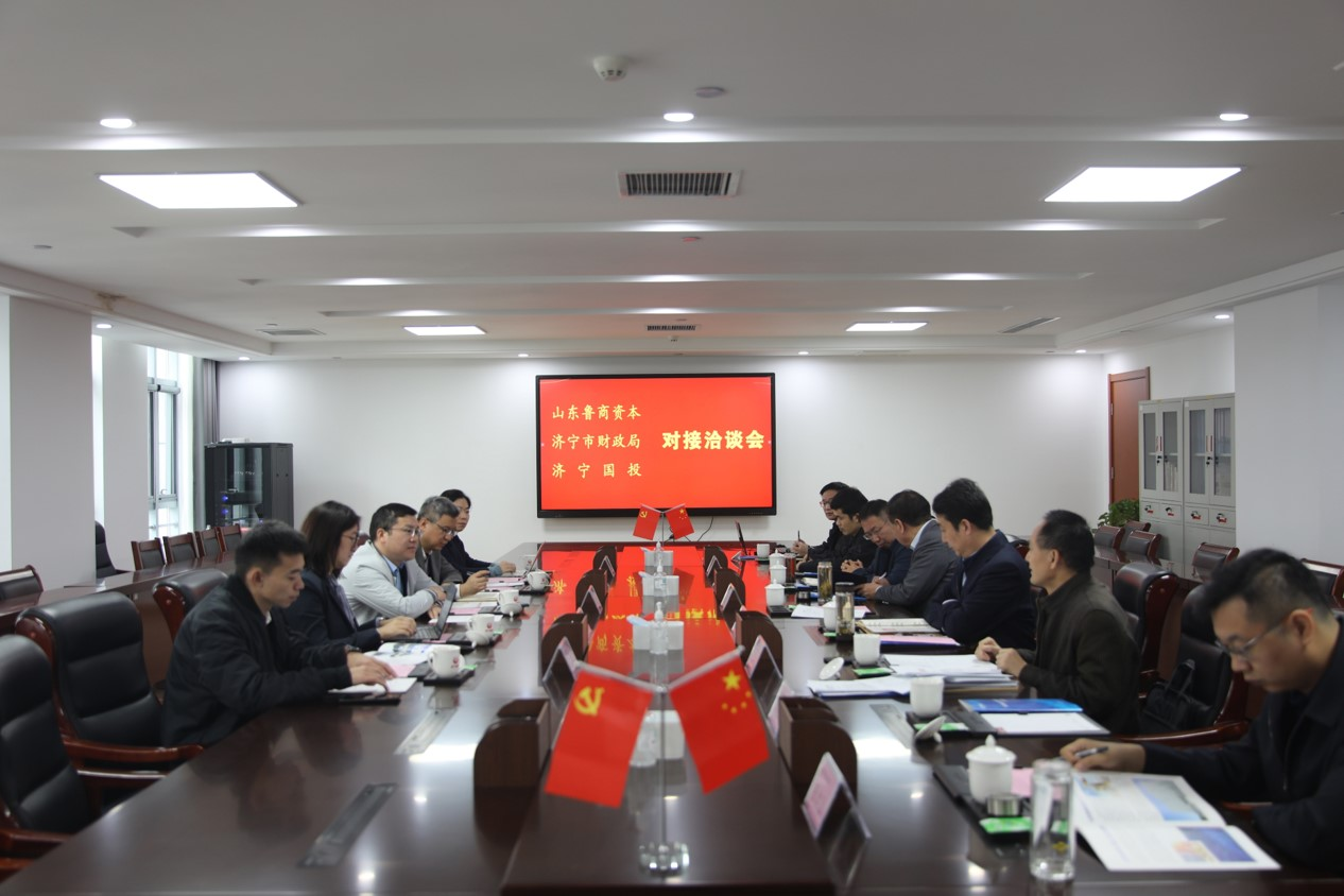 10月21日, 魯商資本、山東魯商私募基金管理有限公司(簡稱魯商基金)同濟寧市財政局、濟寧市國有資產投資控股有限公司(簡稱濟寧國投)在濟寧國投大廈就雙方基金合作展開對接洽談會,魯商資本董事長紀軍令、總經理王軍、副總經理公維曉,魯商基金總經理蔡玉茹,濟寧國投董事長虢洪增、市財政局副局長孔令鋒參加會議。