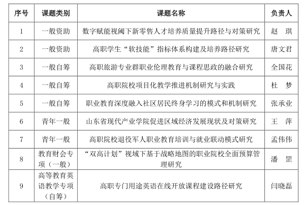 近日,省教育科學規(guī)劃領導小組辦公室公布山東省教育科學“十四五”規(guī)劃2021年度課題立項名單,青島酒店學院9項課題獲得立項。