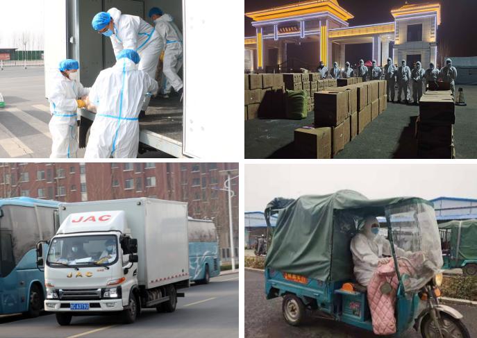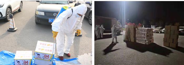 學(xué)院專人對(duì)供應(yīng)物資外包裝進(jìn)行集中消殺,后勤人員和教職工志愿者規(guī)范穿戴防護(hù)服迅速到達(dá)現(xiàn)場(chǎng),有序裝車,運(yùn)進(jìn)校園。由于校內(nèi)沒有大型運(yùn)輸工具,只能用小型貨車、三輪車、小拖車,組成臨時(shí)“運(yùn)輸小分隊(duì)”,各類車輛往返校門口與食堂400多次,運(yùn)輸小分隊(duì)每人每天平均工作13.5小時(shí),用雙腳打通食材供應(yīng)的“最后一公里”。