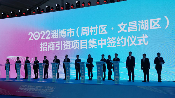 5月9日,在淄博市委、市政府舉辦的2022淄博市(周村區·文昌湖區)招商引資項目集中簽約儀式上,魯商發展與央企中科唐信合力打造的魯商5G產業示范基地項目作為簽約項目受邀參加活動。