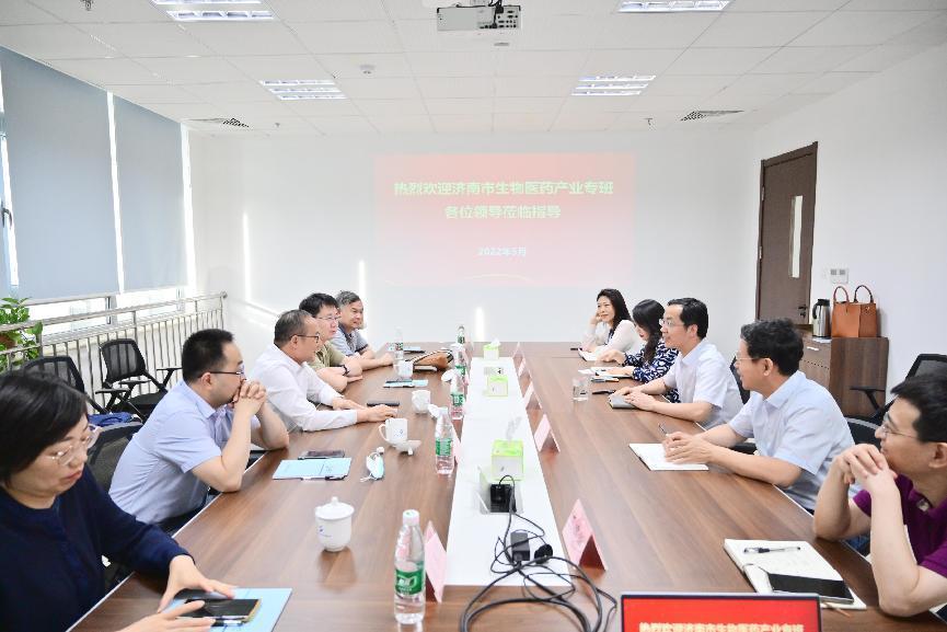5月27日,由濟南市發改委、科技局、工信局、市場監管局、衛健委等部門和單位組成的濟南市生物醫藥產業專班到省醫工設計院調研生物醫藥產業發展情況。省醫工設計院黨總支書記、董事長兼總經理黃曉東陪同調研。
