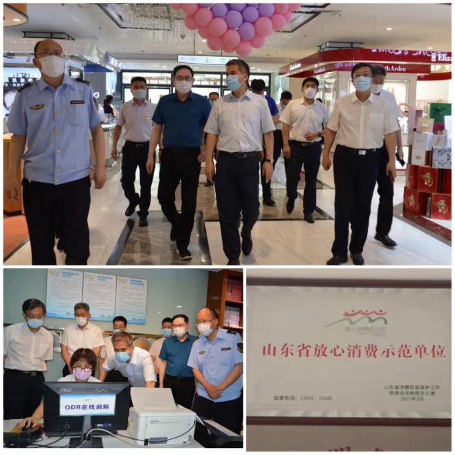 近日,省市監局一級巡視員朱坤峰一行到銀座濟寧商城店調研放心消費創建、消費維權服務站規范化建設等工作,濟寧市副市長張東,任城區委副書記、區長宋華東,濟寧市市監局黨組書記、局長候典峰,任城區政府副區長孔繁華,任城區市場監管局黨組書記、局長陳偉陪同。