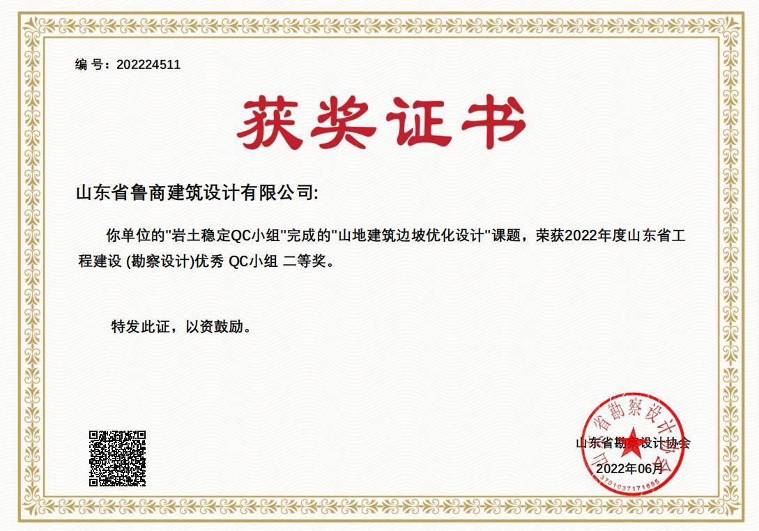 近日,由省勘察設計協會組織評選的2022年度山東省工程建設(勘察設計)優秀QC小組獲獎名單揭曉。魯商服務設計院申報的“山地建筑邊坡優化設計”“降低空調室外機噪聲對居民生活的影響”兩課題分別獲得二、三等獎。