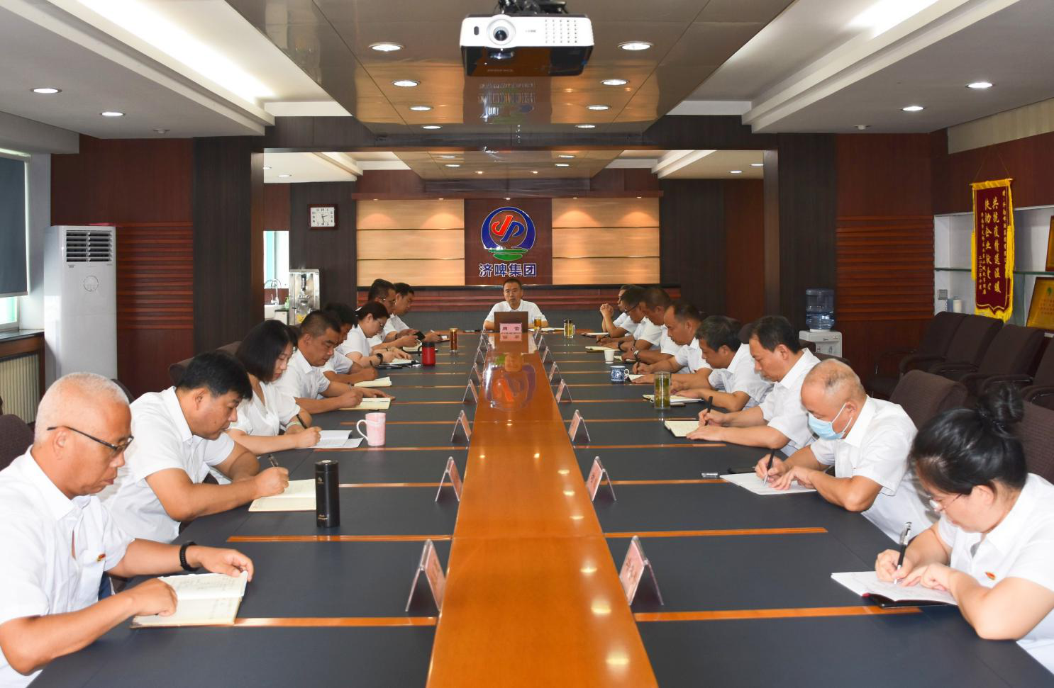 濟啤集團班子成員,各部室、產業園事業部、產品事業部負責人,各支部書記及部分職工代表參加會議。