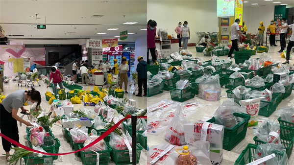 為保證貨源、穩(wěn)定物價,各門店切實扛起國企責任擔當,充分發(fā)揮區(qū)域自采優(yōu)勢,積極拓展貨源,優(yōu)化采購、倉儲、配送、提貨等各個環(huán)節(jié),保障蔬菜水果、肉蛋奶、米面糧油等民生商品供應充足,守護好老百姓的“菜籃子”“肉盤子”“米袋子”。各門店積極組建“社區(qū)銷售服務群”,不斷完善線上履約、接單、揀貨、配送等流程,及時將物資送到廣大群眾手中,確保居家期間物資不斷檔,安心抗疫。
