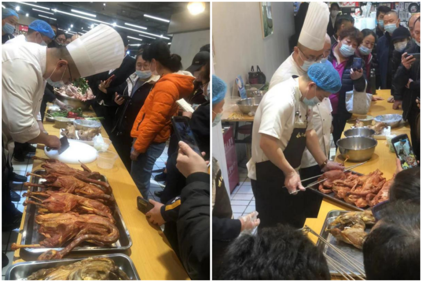 為確保以上項目產品保質落地,11月16日,公司超市事業部在銀座濟南七里山店組織開展自營加工大單品項目推廣培訓活動,以現場實操的方式,集中展示芥末雞、手撕烤大鵝等創新產品的加工方法、加工流程、配料調制、加工關鍵點、注意事項等,培訓過程直觀易懂,為項目在濟南全區域門店順利推廣奠定堅實基礎,濟南區域門店40余名員工參加培訓。待11月底濟南區域門店完成項目落地運行成功后,將在外阜區域門店進行推廣。