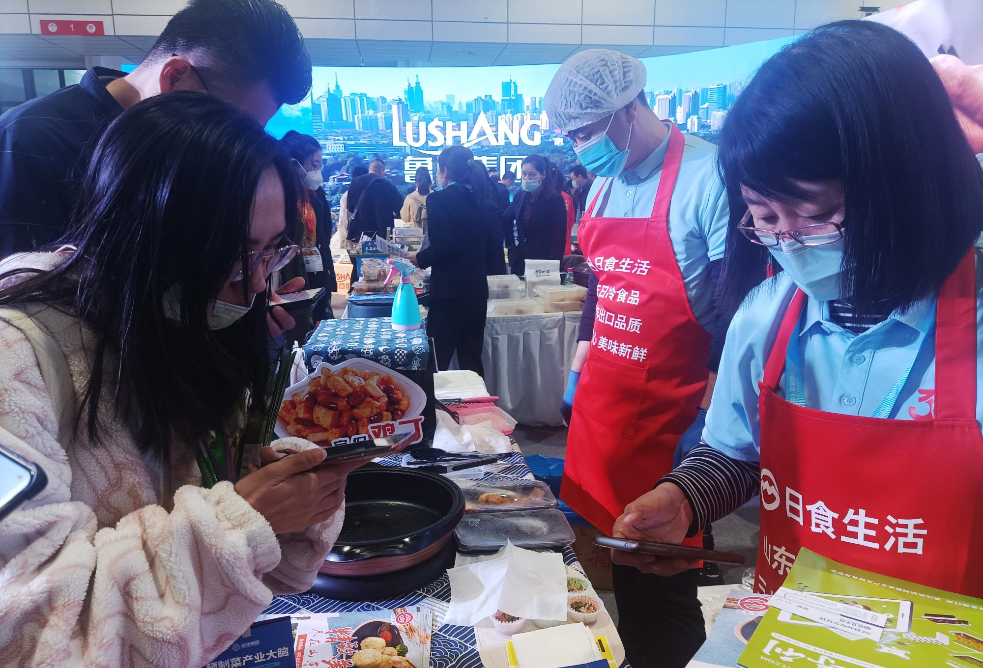 魯商集團展區(qū)內(nèi),多家產(chǎn)業(yè)單位大顯身手,使得參展菜品無比豐富。像即食類的手撕風(fēng)干雞、特色紅燒肉、無骨鴨掌、千層酥、香辣海鮮炒飯、辣子雞丁飯,即烹類的奶油雞肉干酪焗飯、甜玉米魚滑、魚香蝦餅、宮保雞丁、麻婆豆腐、雞翅餃子,即熱類的非遺傳承菜品,即配類的烘焙海鮮等產(chǎn)品,可謂應(yīng)有盡有。